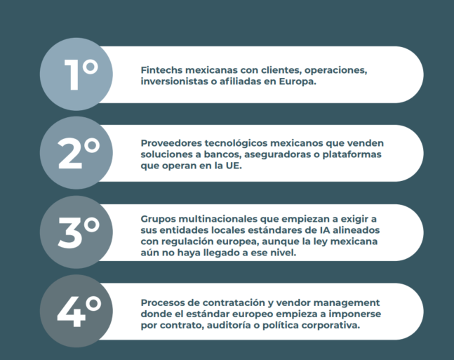 La conclusión es simple: aunque tu entidad opere en México, el AI Act puede terminar afectando tu modelo de cumplimiento, tus contratos y tus controles internos.